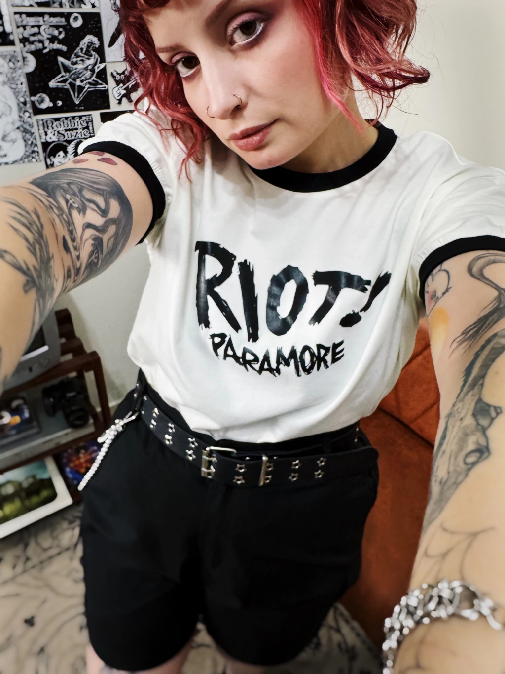 a modelagem da ringer tee é reta (não é acinturada) e um pouco mais justa que a das camisetas normais, então caso prefira que ela fique mais folgada, opte por um tamanho maior do que você normalmente usa de camisetas
